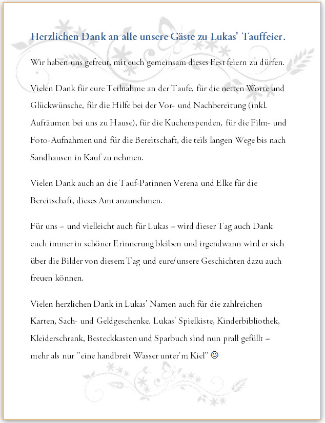Taufe am 09.November 2014, 10:00 in der ev. Christuskirche Sandhausen